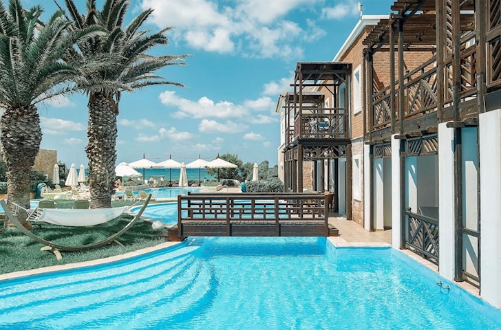 An award-winning Thalasso Centre offering 69 therapies, 29 pools and 500 palm trees: the holiday maths adds up at Mitsis Royal Mare Thalasso & Spa Resort. This sprawling seaside resort in idyllic Anissaras has enough picture-perfect pools and global dining options to serve a small town.