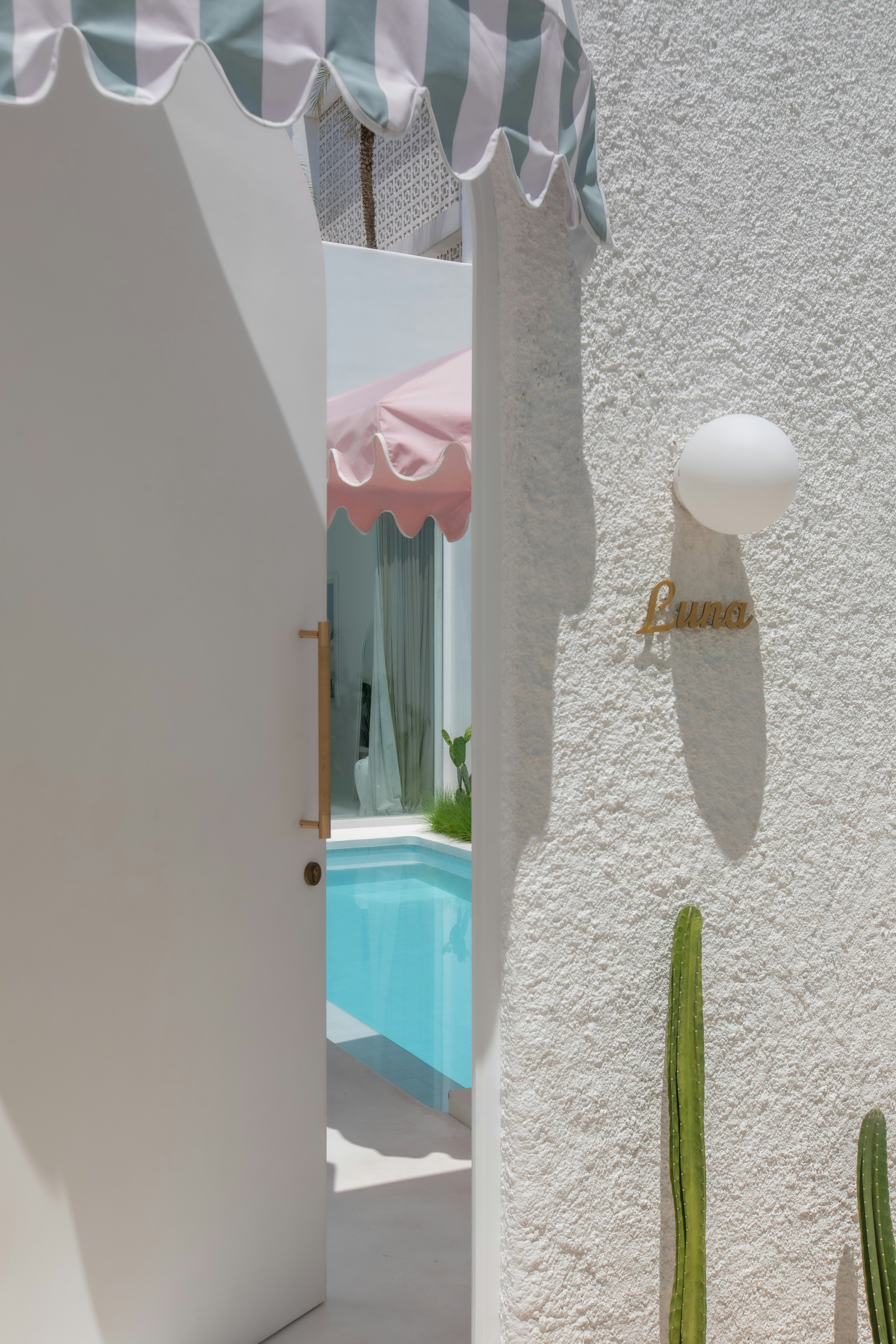 Cali’s aesthetic is all about clean lines and colour pops: pink for one-bedders, blue for twos, green for threes. Whichever you choose, expect white walls, cream interiors, gold accents, and cacti at every turn.