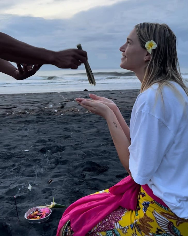 Aussie model, podcaster and best-selling author Ellidy Pullin is a beachy gal by nature—so it's no surprise her adorable mini me loves holidaying poolside, too. From swim lessons for 3-year-old Minnie in Uluwatu to lapping up the local food and embracing the beautiful local tradition of Nyepi Day (an entire 24 hours reserved for silence), Ellidy's love for the tropical island runs so deep it feels like a second home.