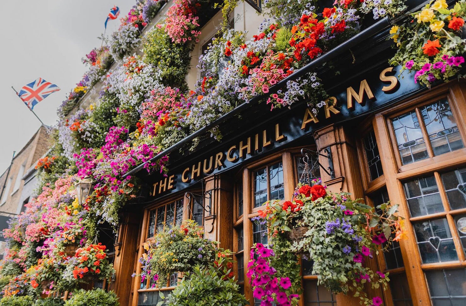 Take in the breathtaking floral displays at The Churchill Arms in Kensington, a pub famously connected to Winston Churchill’s family, where you can enjoy traditional British ales surrounded by lush greenery and quirky memorabilia.