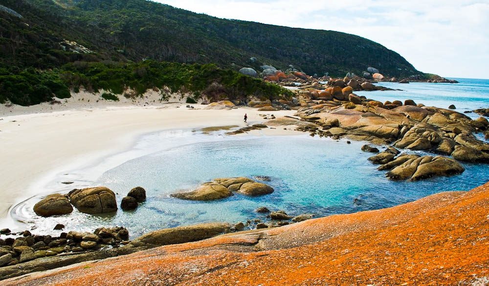 The 23,000 acre island is 30km off Tasmania’s north-west coast, near Stanley. It’s covered in lush rainforest, those iconic orange lichen-covered granite boulders and completely uninhabited except for two caretakers.