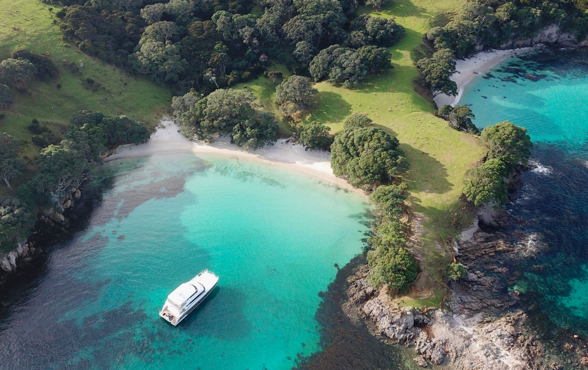 For a slower, nature-led escape, explore the outer Hauraki Gulf with Terra & Tide. Departing from Waiheke aboard a 41-foot catamaran, the experience pairs sailing with guided walks and a locally sourced lunch.