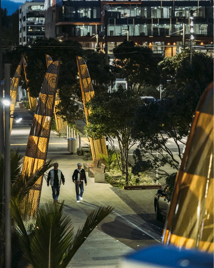 Nine six-metre waka-shaped sculptures now stand along Daldy Street in Wynyard Quarter in all their beautiful glory. Created in partnership with mana whenua and designed by lead artist Graham Tipene in collaboration with master waka builder Hine Waitai Dye, lead designers LandLAB, and contributing artists, the striking hulls are arranged in a taratara-a-kae (zig-zag) formation with five representing waka hourua (ocean-going vessels) and four depicting waka tētē (localised vessels for transport and fishing). Each features intricate pūhoro motifs, tōtara timber ribs, and taonga inside referencing traditional punga anchor stones. A tribute to Auckland's maritime heritage and a fabulous reason to take a wander through Wynyard Quarter now that the weather's warmer. If you even need one...