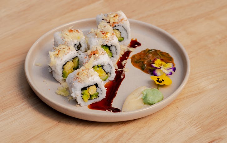 You can mix and match those tacos with sushi plates like spicy vegetable tempura, salmon avocado and tuna asparagus, with Mexican flavours coming through in options like the cucumber avocado, which comes topped with coriander, lime and jalapeno salsa verde. Or, hit the salad and ceviche menu, with shrimp or tuna ceviche as well as sashimi platters and a crispy chicken salad. If that’s not enough, a couple of small plates like grilled corn with miso butter, kimchi fries and truffle fried rice should round you out nicely.