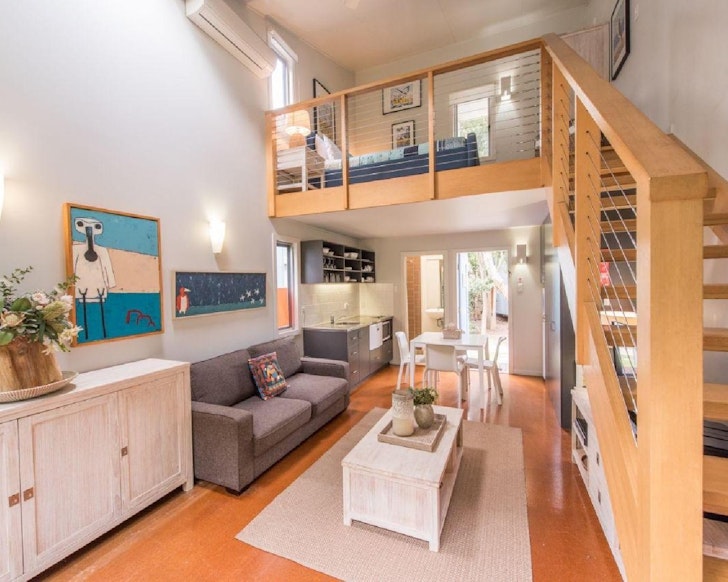 The stay has a range of amazing facilities including a huge outdoor fire pit, a private patio, and an outdoor shower to wash your beach day away. Location wise, it’s a quick stroll to reach the nearest beach, and a seven-minute walk to Adder Rock. To top it off, your pooches are more than welcome with a fully screened off area for them to run around.
