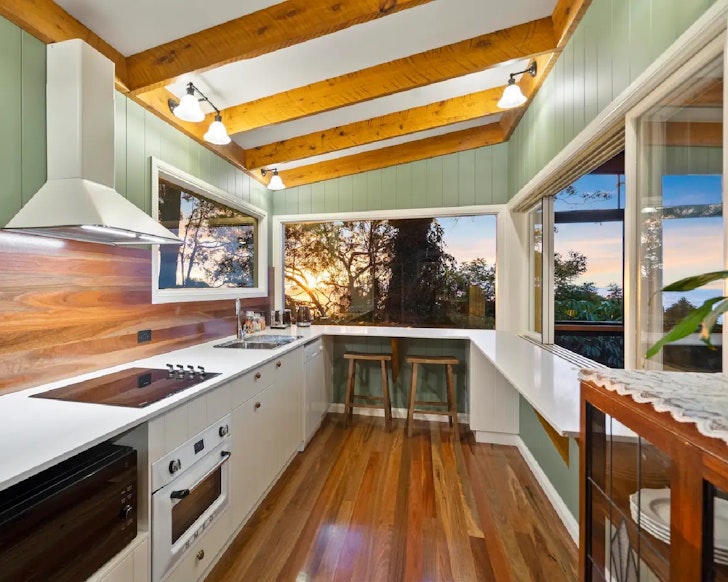 From this beach shack in Point Lookout, everything you need is within walking distance–the gelato shop, gorge walk, multiple beaches and whale watching spots. The shack is perfect for a family holiday, or even a getaway for a group of friends. As well as a cozy interior, the backyard of this property is not to be overlooked. Put your feet up in the hammock, relax by the fire pit, throw something delicious on the BBQ and take the beach off with the outdoor shower. There’s also a friendly resident roo that visits on occasion–it can’t get more wholesome than that.