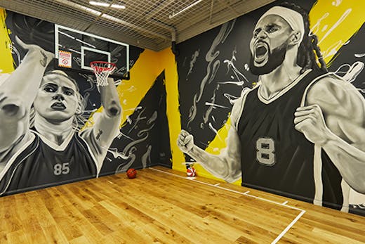 rebel’s new concept store at Westfield Chermside is designed for anything but a standard retail browsing session. It will take your shopping experience to a whole new ball game (literally)—you can shoot some hoops on a basketball court with a mural painted by talented local street artist, James Small.