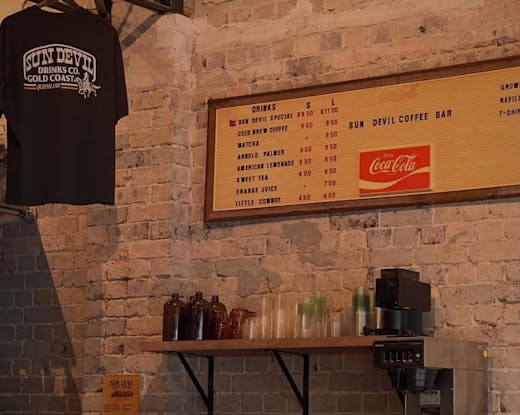 Sun Devil isn’t your average coffee bar—it’s a full-blown Americana fever dream tucked inside the grungy-cool vintage store Strange Days in Coolangatta.