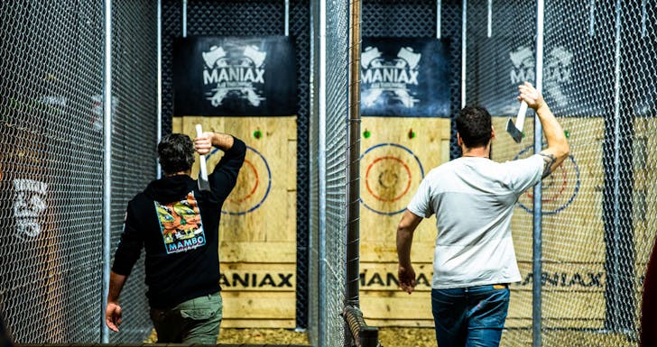 Channelling real Viking energy, Maniax is one heck of a Melbourne axe throwing destination. This joint has five group lanes and six single lanes, with the ability to accommodate groups of up to 90 throwers. That's right, you can throw an axe and a damn fine party here.