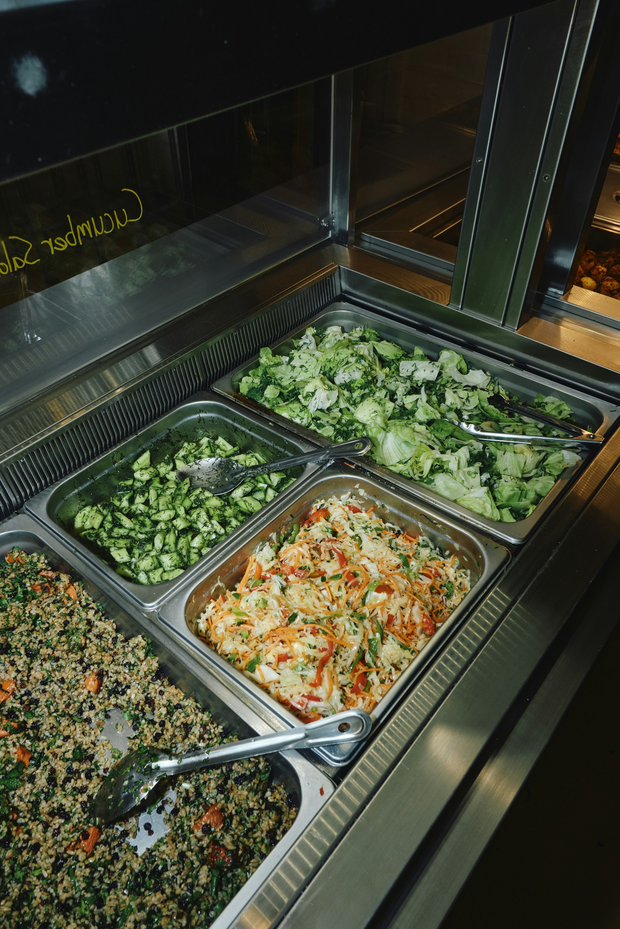 A full salad bar greets you on entry. Options rotate, but don’t skip the punchy, herb-packed chickpea salad with charred peppers, velvet-soft lemony potatoes, pita or dips. Come hungry.