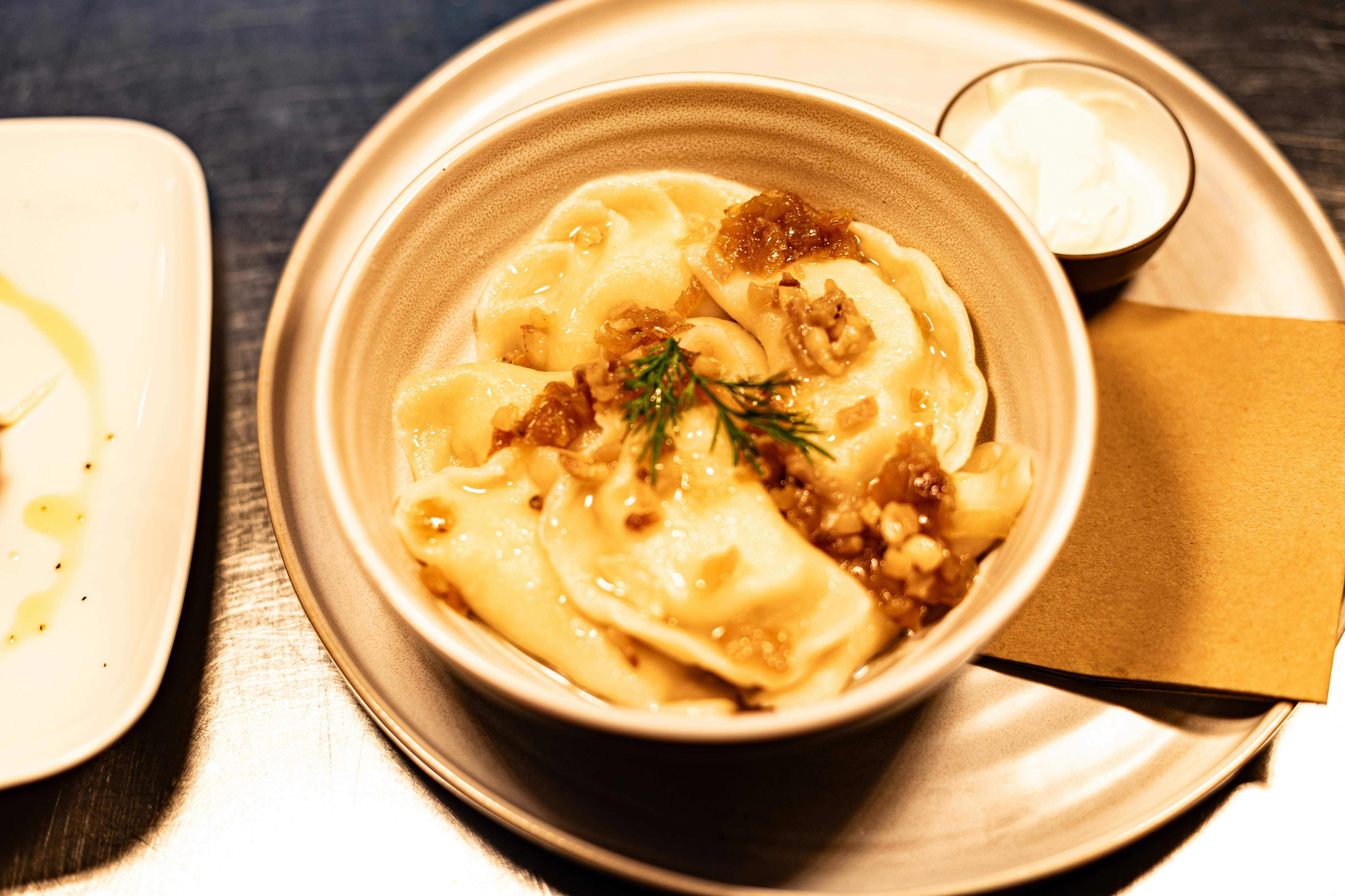 Otakoï’s dishes have traditional roots, with new twists Kachura developed with partner, co-owner and chef Micheal O’Hanlon. Ukrainian varenyky dumplings come stuffed with classic potato or “hearty meat” as well as Kachura’s innovation: smoked salmon and cheese in squid ink dough.