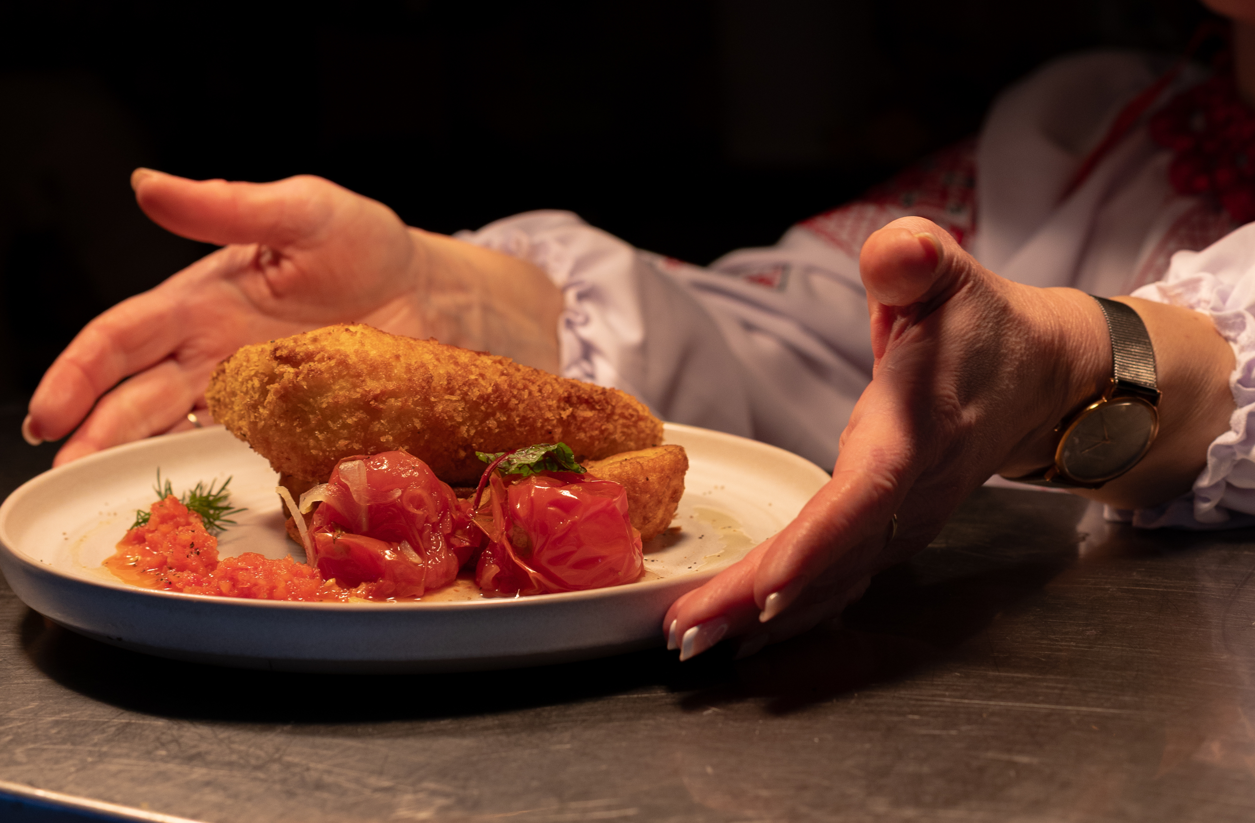Kachura mixes modernity and home comforts, where Ukrainian pop music plays and diners are greeted with ceremonial black bread and salt. “I'm trying to present our culture in each detail,” she says.