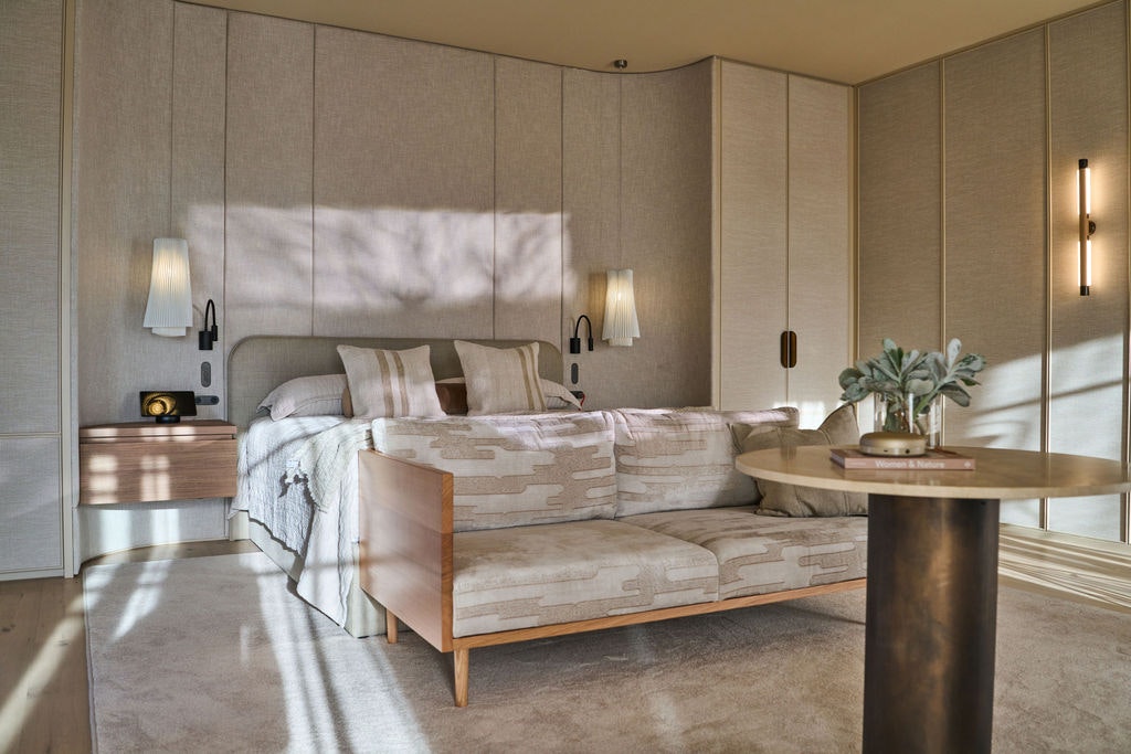 The five villas, dotted around the top of that hill, are accompanied by two studio rooms, each their very own intimate retreat with different offerings, whether that be outlook or design. When you arrive, check in at the springs reception and make your way to the top of the hill where you can take advantage of your blissful surroundings. The in-room amenities, including a bath if you’ve opted for one, are the star of the show, not to mention views out to the horizon, a fireplace, Aesop products and a curated mini-bar.