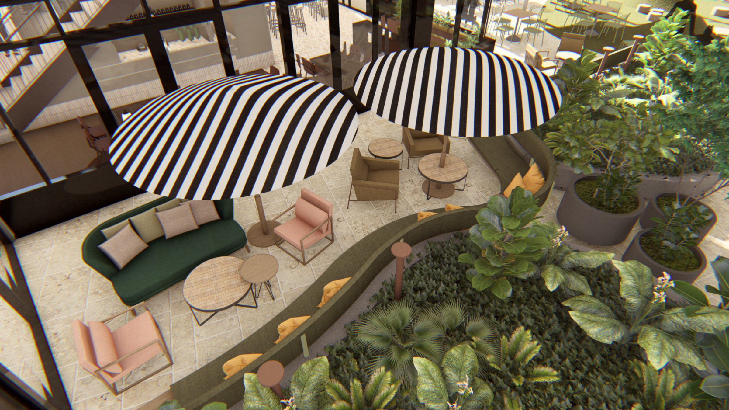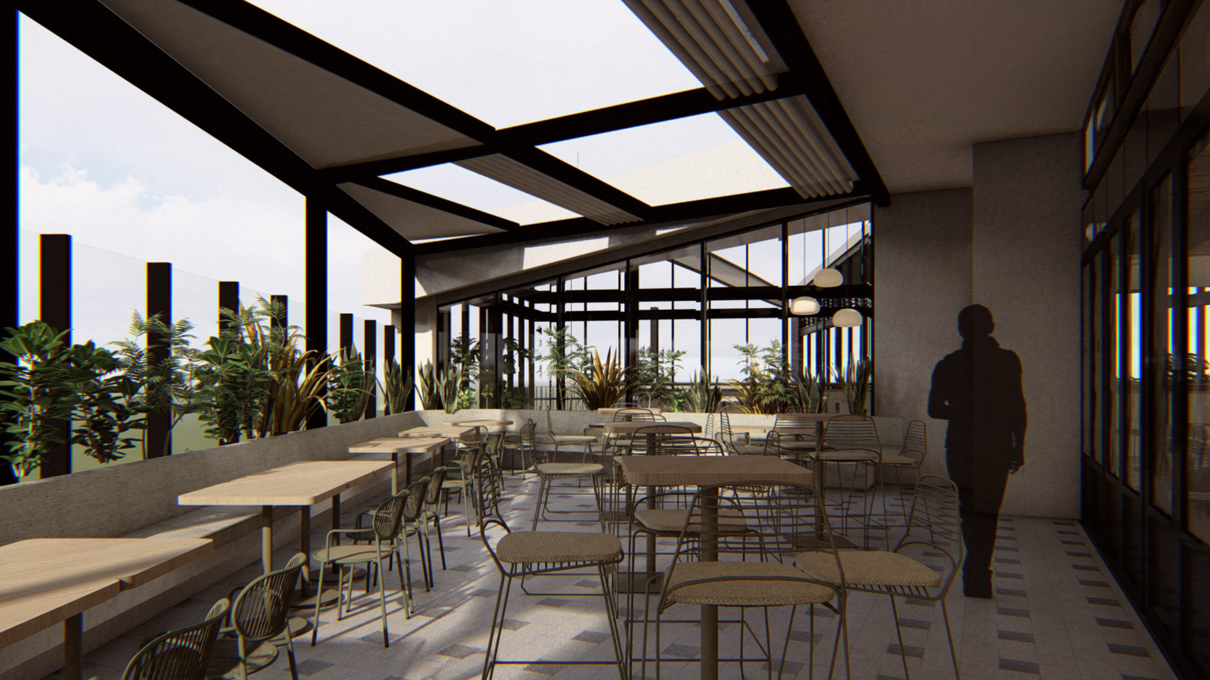 There are two huge bars, a centrepiece stairway to an upper-level private dining room and a function space called Centrā. Bringing roof-top vibes is an all-weather, outdoor terrace—to be named Chadstone Heights—with uninterrupted views of Melbourne’s skyline. There are mega screens, a sports bar, fireplaces and a kids play area that, as Grant says, isn’t built from plastic.