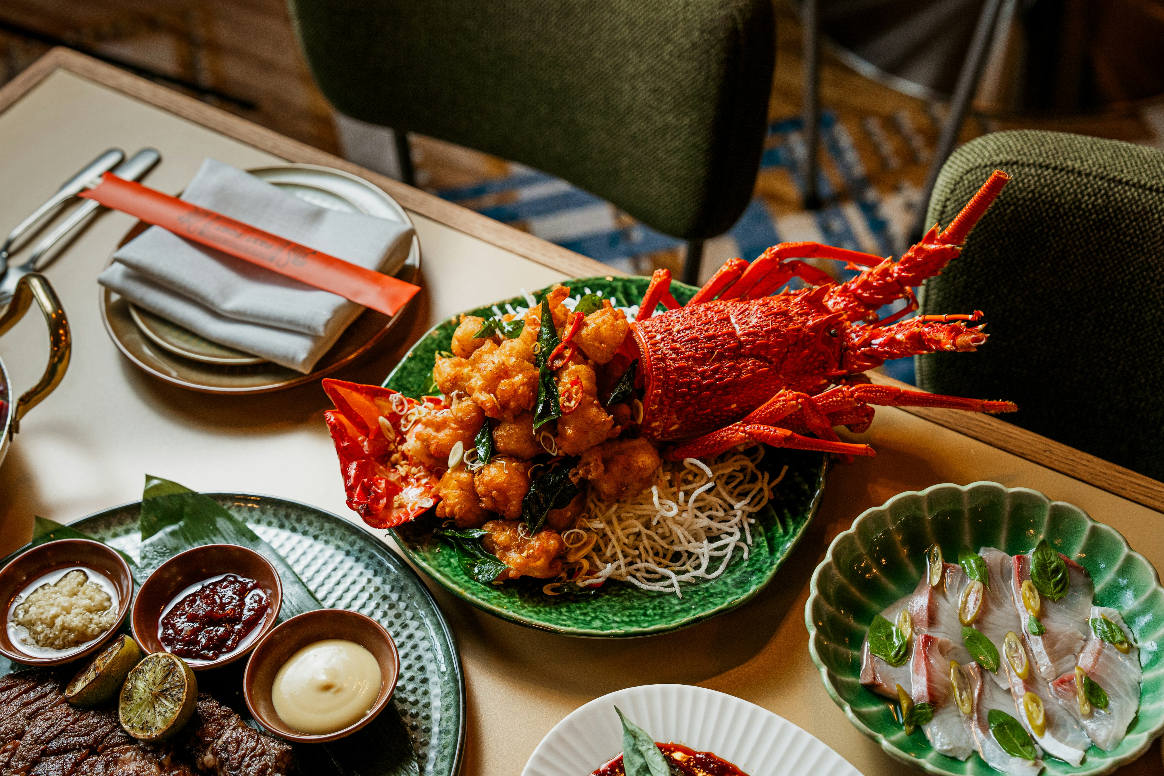 There's a special preorder menu too, with exclusive ‘showstoppers’ that bring an element of further theatre to the experience. From lobster with salted egg yolk popcorn or Singapore chilli mud crab to a 600g O’Connor ribeye with an array of house condiments. These are bold, vibrant dishes that are perfect for sharing.
