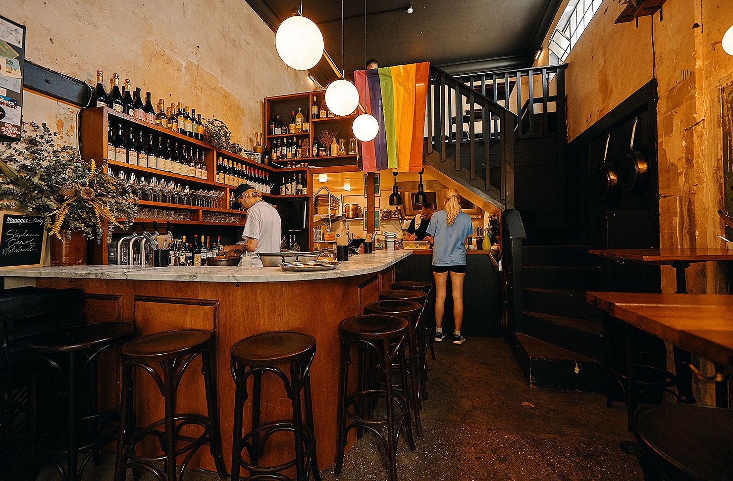 The space is cosy with a few quirks thrown in the mix. You won’t be able to miss the beautiful line art plastered on the front of the restaurant, which quite fittingly is a woman devouring a bowl of pasta and be sure to check out the bar, which has been handcrafted from recycled timber.