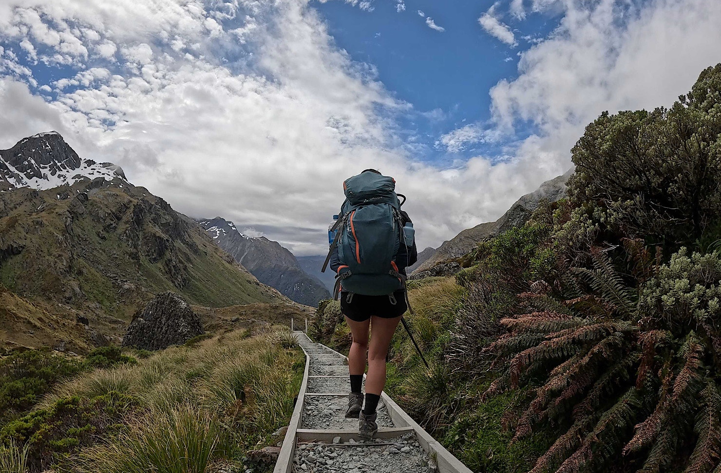 The next day, we’d recommend rising early (a good strategy for any Great Walk). Depending on where you’ve decided to camp next—we hit the Routeburn Flats Hut—you’ll have a 6-7.5 hour day ahead of you that begins with a gentle climb through fairy glade-esque surrounds. This gentle climb then cranks considerably as you follow the path up the side of a cliff (leg day, who?) before eventually summiting to magnificent views. You’ll probably wish you had a GoPro so do yourself a solid so grab one now and thank us later.