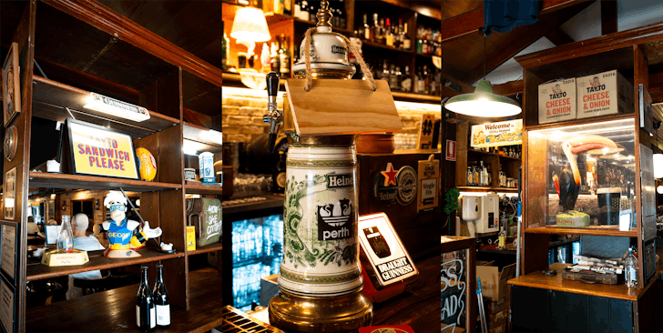 When you wander back out of the snug you'll be welcomed into the colourful, chaotic pub shop. A throwback to the temperance era, when pubs doubled as grocery stores, Mons O’Shea’s shop is stocked with Irish staples, funny t-shirts, newspapers, Guinness brown bread baked in-house, and loaves from O’Connell’s Bakery in Osborne Park.