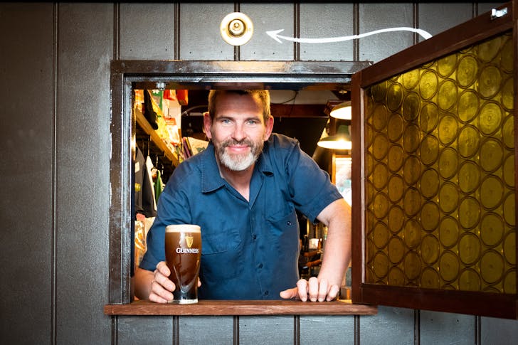 If your chasing something a little quieter than the main bar you can find the tiny semi-private booth known as the Snug. A traditional feature in Irish pubs where historically women, businessmen, or anyone wanting privacy would drink. Inside, you’ll even find a bell to ring for service, bar staff will open the hatch and deliver your drink straight through, just like the old days.