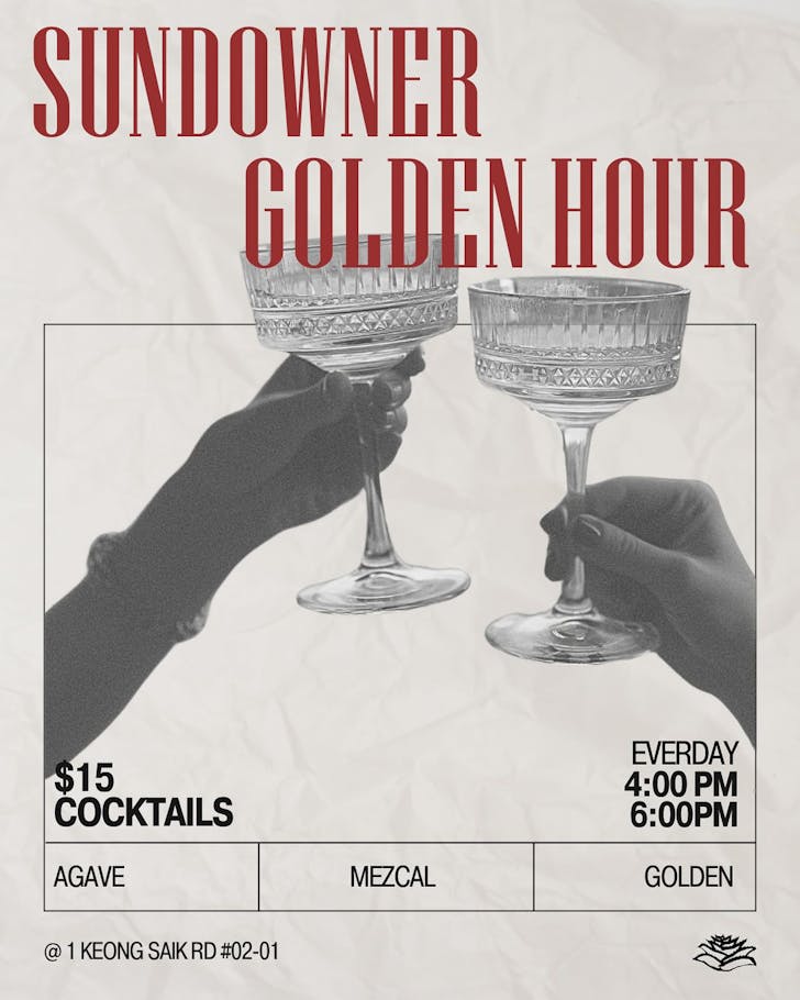 There’s no sweeter moment than happy hour in Singapore, especially when we're known for our sky-high alcohol price. For drink deals hunter obsessed with good drinks and great nights out, consider this your guide to Singapore’s happy hour game. You’ve got rooftop bars overlooking Marina Bay, CBD haunts pouring post-work fuel, taquerias slinging margaritas on the cheap, and speakeasies hidden down alleyways shaking up ridiculous drink deals once the clock strikes five (or sometimes, all-day Happy Hour!)