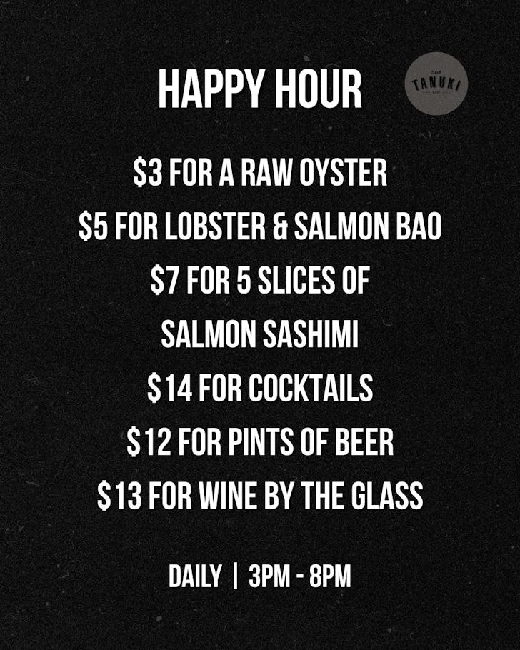 If your ideal happy hour looks like oysters, cocktails, and mild emotional recovery after a long day, Tanuki Raw has your number. Their daily raw-bar happy hour (3pm to 8pm at Orchard Central) is the stuff of legends with $3 freshly shucked oysters, capped at six per alcoholic drink so you don’t black out the ocean floor; $7 salmon sashimi; $10 uni; and those dangerously addictive $5 baos that seem to multiply the more you drink. Drinks stay friendly too, with cocktails, wines, and beers hovering around $12–$14, making it one of the best-value seafood-and-sip combos in town.