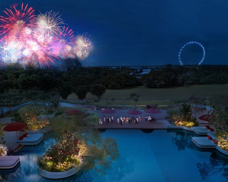 The real flex comes after 9pm, when the skies above the Singapore Sports Hub light up with Singapore’s longest New Year’s Eve fireworks display, a full 35-minute spectacle. Thanks to the hotel’s vantage point, guests get unobstructed views directly from the pool deck, no jostling required, no last-minute sprint for a decent sightline. Tickets are priced at $128 per person, including the BBQ buffet and free-flow beer and soft drinks, with an optional $20 upgrade for free-flow Prosecco, red and white wines. Come for the grill and the poolside vibes, stay for one of the city’s most stress-free firework countdowns.