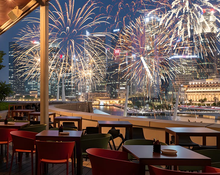 The showstopper? Unobstructed views of Sentosa’s fireworks exploding over the beach. Entry is $30 (GST included) with a complimentary drink, one of the best-value parties with front-row pyrotechnics. Want to flex? Table and premium drink packages start from $368. Tickets sell out fast via Peatix.