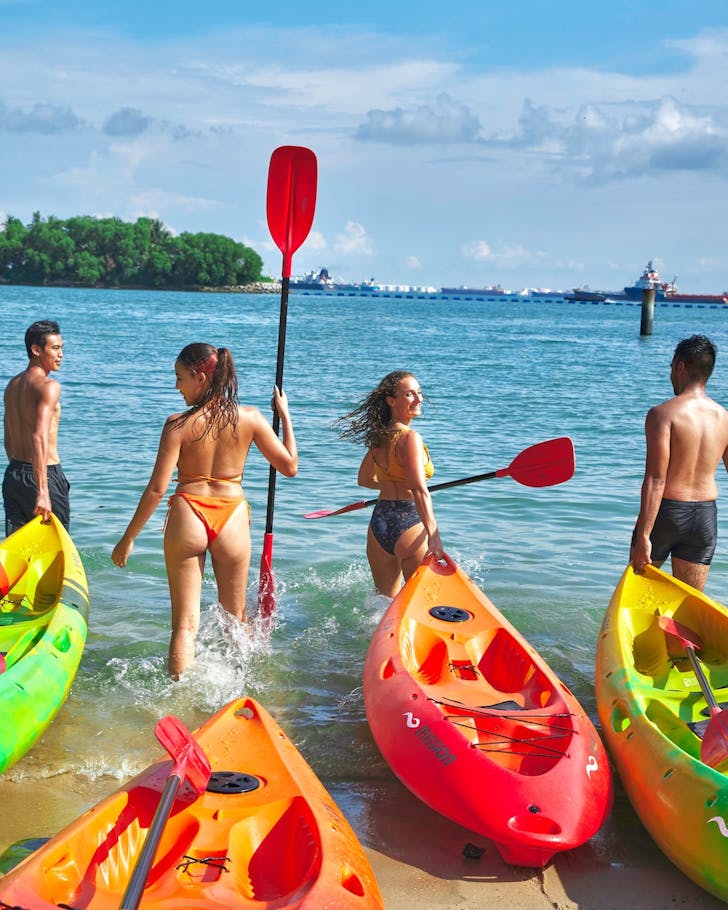 If you prefer sitting down while you suffer (we get it), kayaking is your move. Paddle along East Coast Park, skirt the beaches of Sentosa, or head inland to glassy reservoirs like Bedok or Marina Bay with PAssion WaVe. Expect peaceful stretches of water, jungle-lined edges and the occasional reminder that this is still, technically, exercise.