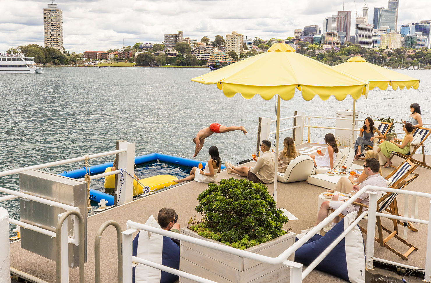 The team at PIER BAR have transformed their private pontoon into the ultimate harbourside destination for swimming, dining, and relaxing during the hotter months.