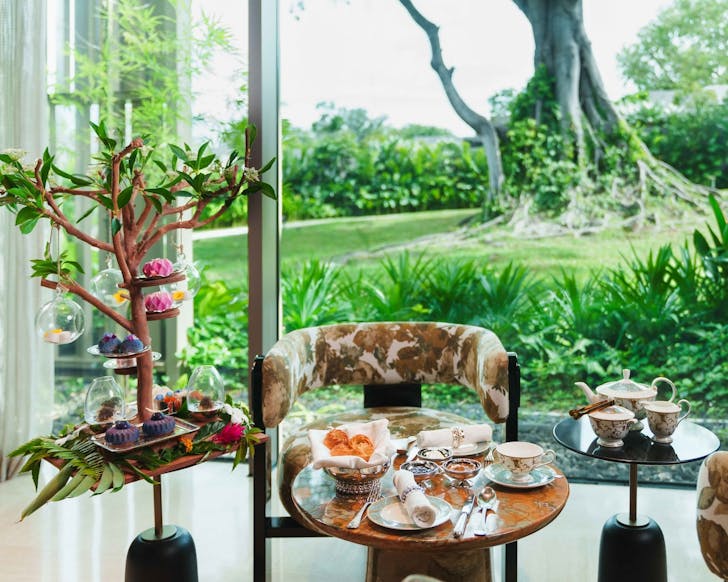 Afternoon tea hits new heights of refinement at The Tea Room, the newly launched modern garden sanctuary nestled in the lobby of The St. Regis Singapore. Inspired by the nearby Botanic Gardens and anchored in heritage, this sky-lit space offers a refreshed take on the St. Regis' beloved tea ritual with plush interiors, botanical flair, and exquisite patisserie. The Summer Garden Afternoon Tea (from $65 per person) opens with sparkling tea and a tea sommelier-curated pot brewed tableside, before unveiling a three-tiered spread of foie gras shortbread with raspberry caviar, elderflower goat cheese tartlets, jasmine citrus cake, tropical garden tart, and warm scones with clotted cream and four jam options.